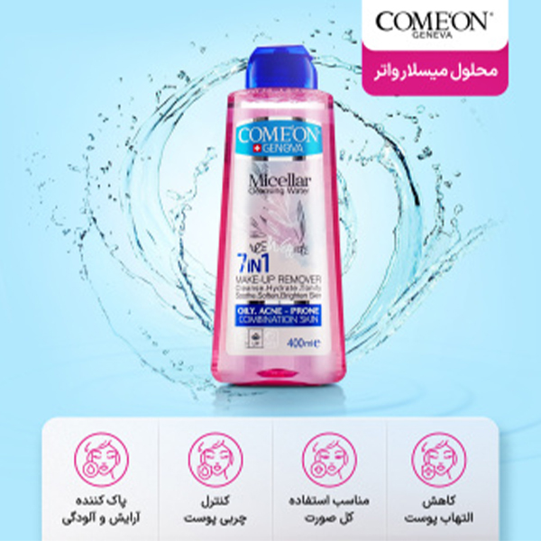 ویژگیهای برجسته میسلار واتر کنترلکننده چربی مخصوص پوستهای چرب و آکنهای کامان مدل 7in1 حجم 400 میل