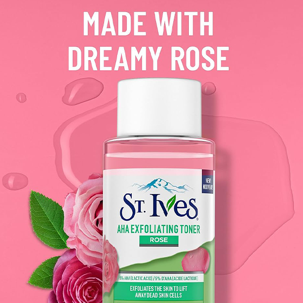 ویژگیهای برجسته تونر لayهبردار و روشنکننده پوست سینت ایوز حاوی AHA و عصاره گل رز مدل Exfoliating حجم 197.5 میل