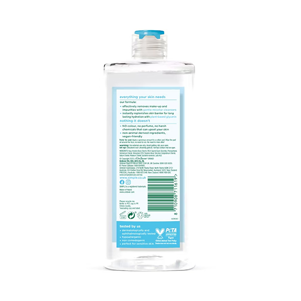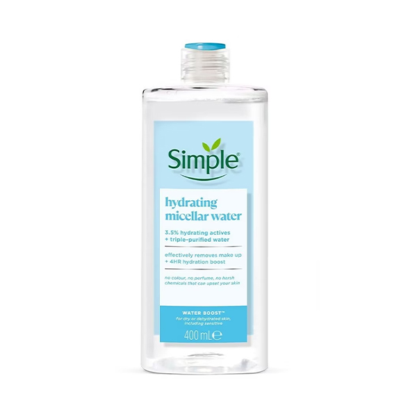 ویژگیهای برجسته میسلار واتر آبرسان قوی و شادابکننده سیمپل مخصوص پوستهای خشک مدل Water Boost حجم 400 میل