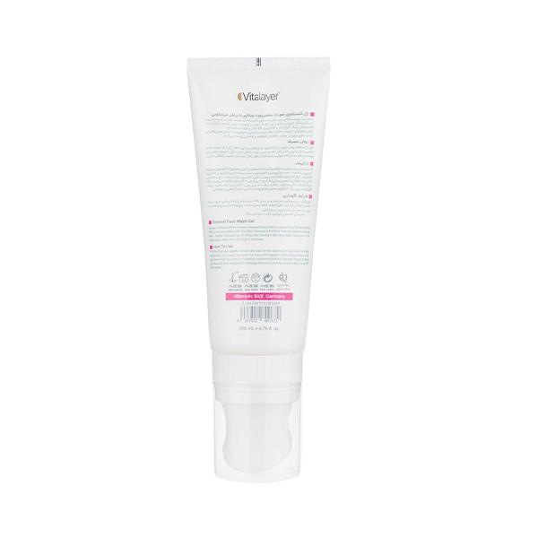 ویژگیهای برجسته ژل شستشوی صورت تسکیندهنده ویتالیر مخصوص پوستهای حساس همراه با برس سیلیکونی مدل Sensivit حجم ۲۰۰ میل