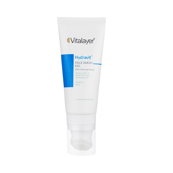 ژل شستشوی صورت آبرسان ویتالیر فاقد سولفات همراه با برس سیلیکونی مدل Hydravit حجم 200 میل