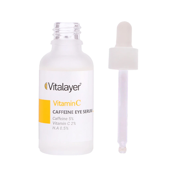 ویژگیهای برجسته سرم دور چشم ضد تیرگی و پف ویتالیر حاوی ویتامین C و کافئین مدل Vitamin C حجم 30 میل