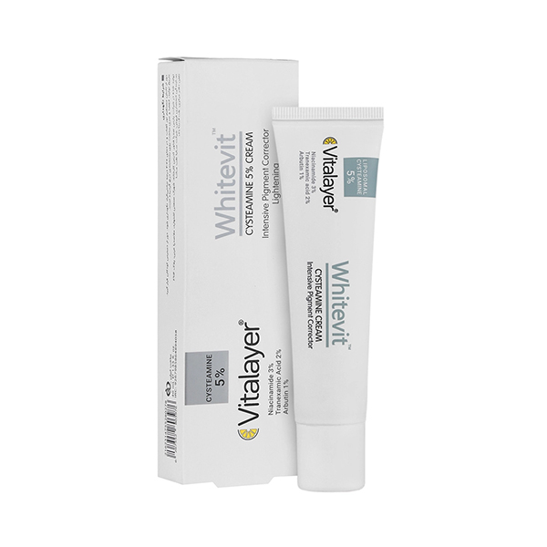 ویژگیهای برجسته کرم ضد لک قوی و روشنکننده ویتالیر حاوی سیستئامین ۵٪ مدل Whitevit حجم 40 میل