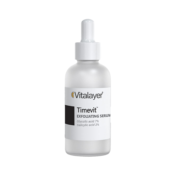 ویژگیهای برجسته سرم لایهبردار و ضد چروک ویتالیر روشنکننده حاوی گلایکولیک اسید ۷٪ مدل Timevit حجم 30 میل
