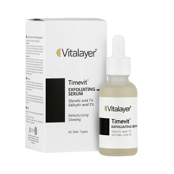 سرم لایهبردار و ضد چروک ویتالیر روشنکننده حاوی گلایکولیک اسید ۷٪ مدل Timevit حجم 30 میل