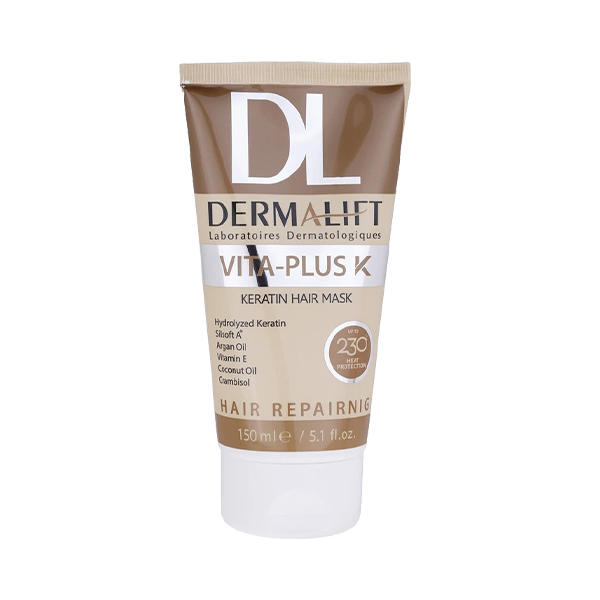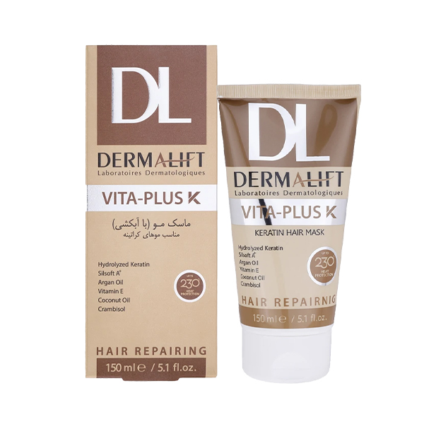 ماسک موی تثبیت‌کننده کراتین درمالیفت فاقد سولفات مخصوص موهای کراتینه مدل Vita-Plus حجم 150 میل