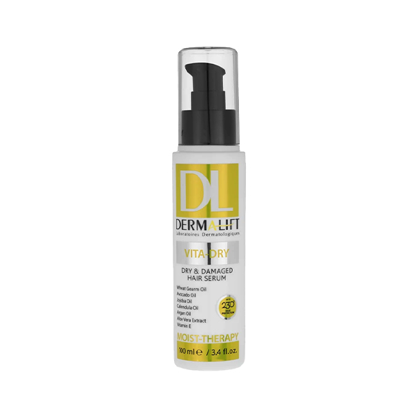 سرم موی ترمیمکننده و درخشانکننده درمالیفت مخصوص موهای خشک و آسیبدیده مدل Vita-Dry حجم 100 میل