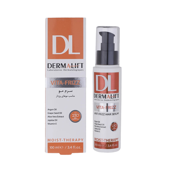 ویژگیهای برجسته سرم موی ضد وز و نرمکننده درمالیفت مخصوص موهای وزدار مدل Vita-Frizz حجم 100 میل
