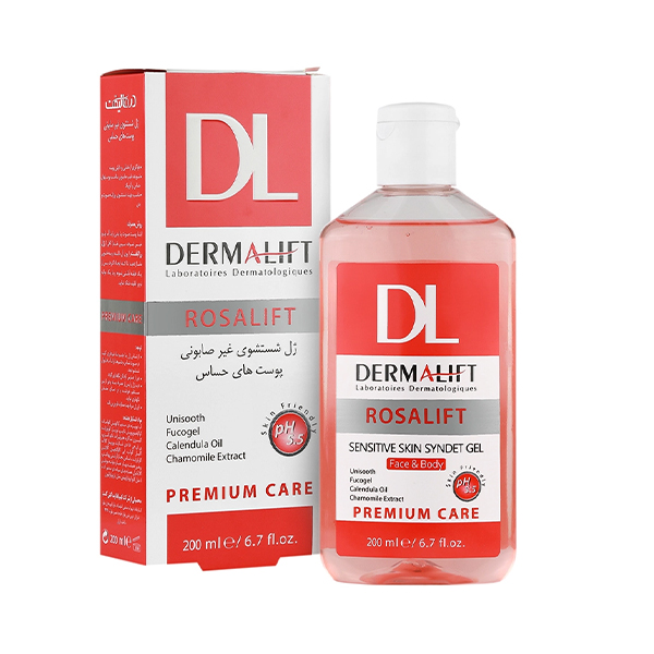 ژل شستشوی صورت تسکیندهنده و ضد قرمزی درمالیفت مخصوص پوستهای حساس مدل Rosaliift حجم 200 میل