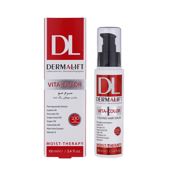 سرم موی تثبیتکننده رنگ و درخشانکننده درمالیفت مخصوص موهای رنگشده مدل Vita-Color حجم 100 میل