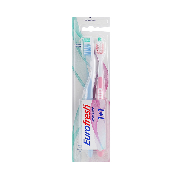مسواک فارماسی مدل Eurofresh با برس متوسط و الیاف گرد شده بسته ۲ عددی