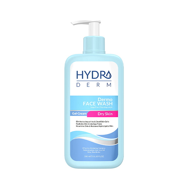 کرم ژل شستشوی صورت هیدرودرم مدل Dermo حاوی شی باتر و اوره مناسب پوستهای خشک و حساس حجم ۳۵۰ میل