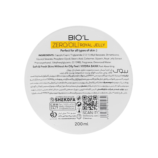 ژل کرم مرطوب کننده و تغذیهکننده بیول (Biol) مدل Royal Jelly, محصولی با فرمولاسیون فاقد چربی (Oil-Free) است که برای پوستهای چرب، مختلط و مستعد جوش طراحی شده است. این محصول بافت ژل کرمی سبک داره و به دلیل بهرهگیری از ژل رویال (Royal Jelly), به طور مؤثری پوست رو تغذیه، آبرسانی و بازسازی میکنه. ژل رویال که منبع غنی از اسیدهای آمینه و ویتامینها است، به کاهش التهابات و افزایش خاصیت ارتجاعی پوست کمک شایانی مینماید. این کرم همچنین حاوی هیالورونیک اسید برای آبرسانی عمیق و ویتامینهای B و E است که به حفظ رطوبت طبیعی پوست بدون ایجاد سنگینی یا چربی اضافی کمک میکنن. این محصول فاقد پارابن و سیلیکون بوده و مناسب استفاده روزانه برای صورت و دست میباشد.