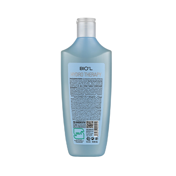شامپو مرطوب کننده و آبرسان بیول مدل Hydro Therapy حاوی هیالورونیک اسید و پروتئین شیر حجم ۴۰۰ میل