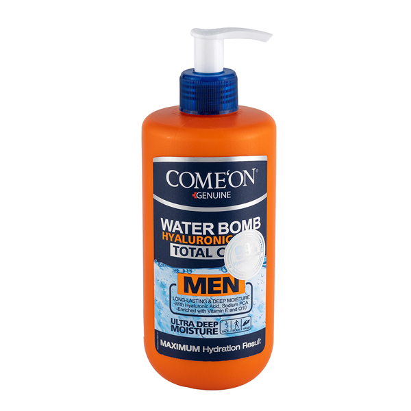 کرم آبرسان و مرطوب کننده کامان (Come'On) مدل Water Bomb Total Care, یک ژل کرم فاقد چربی (Oil-Free) است که به طور تخصصی برای آقایان و انواع پوست طراحی شده است. این محصول بافت ژل کرمی بسیار سبک داره و به دلیل بهره‌گیری از هیالورونیک اسید (با قدرت آبرسانی فوق‌العاده)، کوآنزیم Q10 و ویتامین E, یک راه‌حل ضد چروک و جوانساز ارائه می‌ده. این کرم به سرعت جذب پوست شده و هیچ حس سنگینی یا براقیت بر جای نمی‌ذاره و تا ۲۴ ساعت رطوبت پوست رو حفظ می‌کنه. بمب آبرسان کامان با داشتن SPF15سدیم PCA و ویتامین‌های گروه B, به ترمیم پوست پس از اصلاحکاهش قرمزی و تیرگی و سفت شدن پوست کمک می‌کنه. حجم ۵۰۰ میلی‌لیتری پمپی آن برای استفاده روزانه صورت و بدن بسیار اقتصادی و مناسب است.