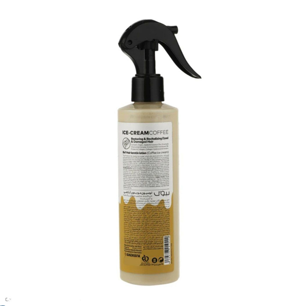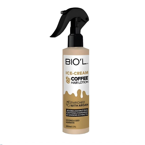 لوسیون موی بیول (Biol) مدل Ice Cream Coffee, یک لوسیون تقویتی بدون نیاز به آبکشی (Leave-in) با حجم ۲۵۰ میلیلیتر است که به طور تخصصی برای موهای رنگ شده، دکلره شده و آسیب دیده طراحی شده است. این محصول بافت شیری و سبک، به سرعت جذب موها میشه. فرمولاسیون این لوسیون حاوی ترکیبات احیا کننده قوی شامل کافئین، عصاره جنسینگ و بابونه و همچنین روغنهای آرگان، جوجوبا و نارگیل است. کافئین و جنسینگ به تقویت فولیکول مو و کاهش ریزش مو کمک کرده و کراتین هیدرولیز شده ساختار مو رو ترمیم میکنه. این لوسیون با تغذیه عمقی موها، از شکنندگی و وز جلوگیری مینماید و به دلیل داشتن فیلترهای محافظتی, در برابر آسیبهای حرارتی (سشوار) و محیطی از موها محافظت میکنه.