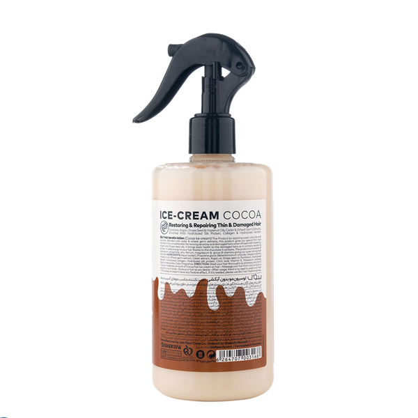 لوسیون موی بدون نیاز به آبکشی بیول مدل Ice Cream Cocoa حاوی کراتین، کلاژن و روغنهای آرگان، فندق و هسته انگور مناسب موهای آسیب دیده حجم ۴۰۰ میل