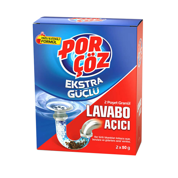 پودر لوله باز کن پورچوز (Porçöz) مدل Ekstra Güçlü (قدرت مضاعف), یک پودر گرانولی فوقالعاده قوی با وزن ۲ × ۵۰ گرم است که برای رفع سریع و مؤثر انواع گرفتگیهای سخت در سیستمهای فاضلاب خانگی طراحی شده است. این محصول با فرمولاسیون فعال خود، قادر است گرفتگیهای ناشی از چربی، مو، بقایای صابون و مواد آلی را در کمترین زمان حل نماید. ویژگی برجسته این پودر، عملکرد شیمیایی قوی و مطمئن آن است که بدون آسیب رساندن به لولهها و اتصالات پلاستیکی و PVC, مسیر جریان آب را کاملاً باز میکند. این محصول برای استفاده در سینک ظرفشویی، روشویی، وان حمام، دستشویی و توالت فرنگی مناسب است و به دلیل عملکرد سریع و قوی، در زمان و هزینه صرفهجویی میکند.