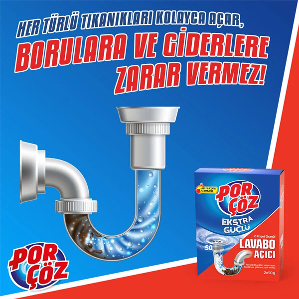 اگه به دنبال یک راهحل آسان و مؤثر برای باز کردن سریع لولههای مسدود شده هستی، پودر Ekstra Güçlü پورچوز بهترین انتخابه. این محصول با قدرت پاک کنندگی بالا و عملکرد سریع, بهت تضمین میده که مشکل گرفتگی لولههات در کمترین زمان حل بشه.