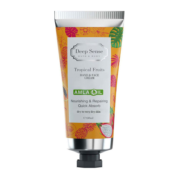 کرم مرطوب کننده قوی دیپ سنس مدل Tropical حاوی روغن آرگان و میوههای استوایی مناسب پوست خشک و خیلی خشک حجم ۶۰ میل