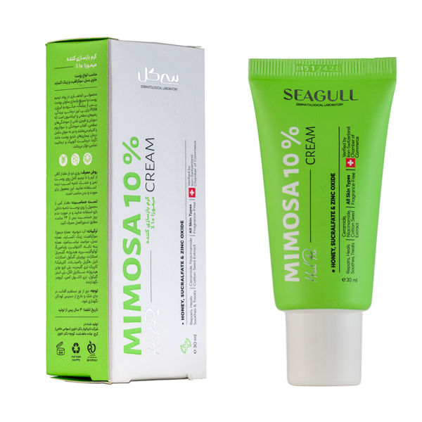 کرم بازسازی کننده میموزا ۱۰٪ از برند سی گل (Seagull)، یک محصول درمانی تخصصی برای تسریع فرآیند بازسازی و ترمیم پوستهای آسیبدیده است. این کرم با فرمولاسیون پیشرفته، حاوی ماده فعال سوکرالفیت (Sucralfate) است؛ سوکرالفیت یک ترکیب دارویی است که در ناحیه آسیبدیده، یک لایه محافظ ایجاد کرده و به ترمیم بافت کمک میکند. همچنین، وجود عصاره میموزا ۱۰٪ که خواص آنتیباکتریال و ضدالتهابی دارد، به تسکین پوست و جلوگیری از عفونت کمک مینماید. این کرم با کاهش قرمزی، سوزش و التهاب، به طور مؤثر به احیای سد دفاعی پوست کمک کرده و برای استفاده پس از انواع درمانهای تهاجمی پوستی (مانند لیزر، پیلینگ و خالبرداری) و همچنین رفع سوختگیهای سطحی مناسب است.