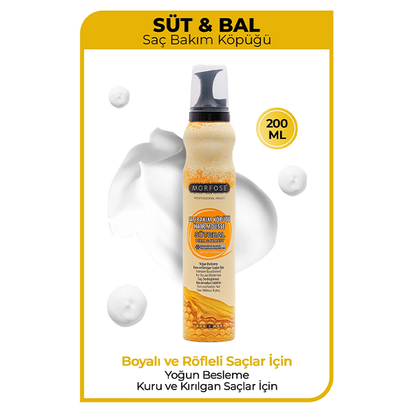 موس موی نرم کننده و ترمیم کننده مورفوس حاوی شیر و عسل مناسب موی خشک و شکننده حجم ۲۰۰ میل