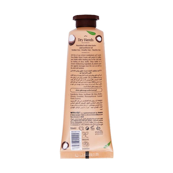 کرم مرطوب کننده و مغذی دست ویت یو حاوی شی باتر و ویتامین E مناسب پوستهای خشک حجم ۵۰ میل