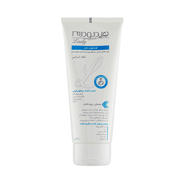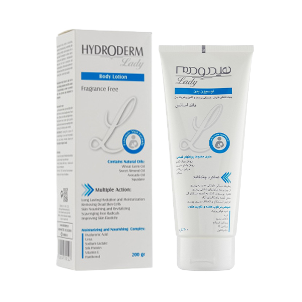 لوسیون مرطوب کننده و آبرسان بدن هیدرودرم حاوی هیالورونیک اسید فاقد اسانس حجم ۲۰۰ میل