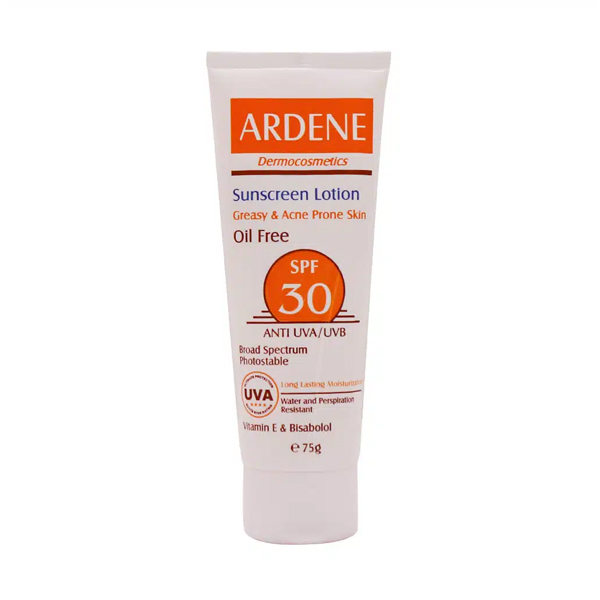 لوسیون ضد آفتاب آردن SPF 30 فاقد چربی مناسب پوستهای چرب و جوشدار حجم ۷۵ میل