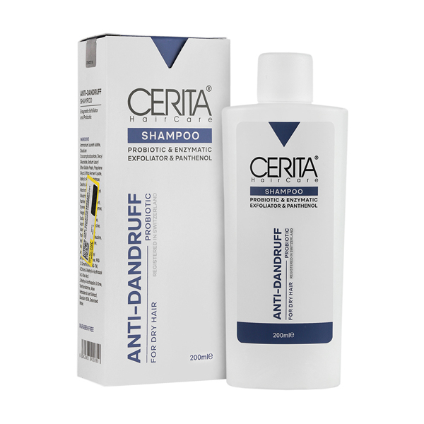 شامپو ضد شوره سریتا حاوی پانتنول و پروبیوتیک مناسب موهای خشک حجم ۲۰۰ میل