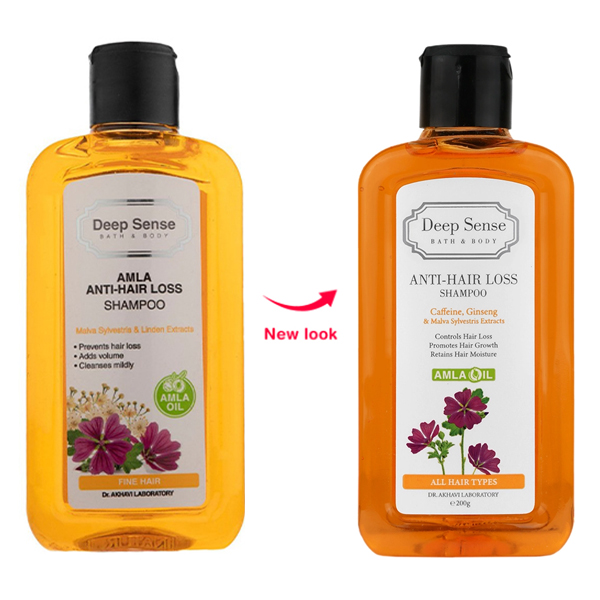 شامپو تقویت کننده و ضد ریزش دیپ سنس حاوی روغن آملا و عصاره جینسینگ مناسب انواع مو حجم ۲۰۰ میل