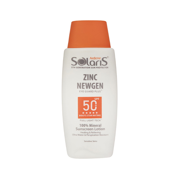 لوسیون ضد آفتاب و التیام بخش آردن سولاریس SPF 50 مدل Zinc Newgen مناسب پوستهای حساس حجم ۱۰۰ میل
