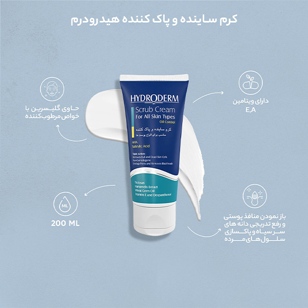 کرم لایه بردار و پاک کننده هیدرودرم حاوی دانههای اسکراب مناسب انواع پوست حجم ۲۰۰ میل