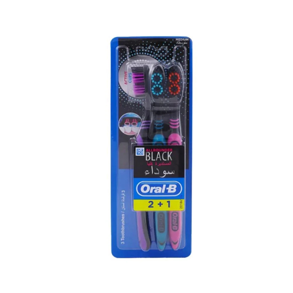 مسواک ۳ کاره اورال بی مدل Black برس مدیوم بسته ۳ عددی