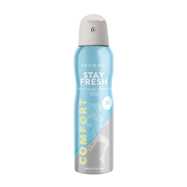 اسپری ضد تعریق ۲۴ ساعته مردانه فارماسی مدل Comfort با محافظت کامل و رایحه ملایم حجم ۱۵۰ میل