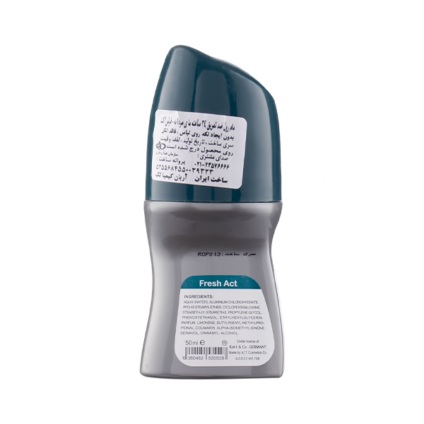 رول ضد تعریق مردانه مای مدل Fresh Act با خاصیت آنتیباکتریال خنک و فرمولاسیون Invisible حجم ۵۰ میل