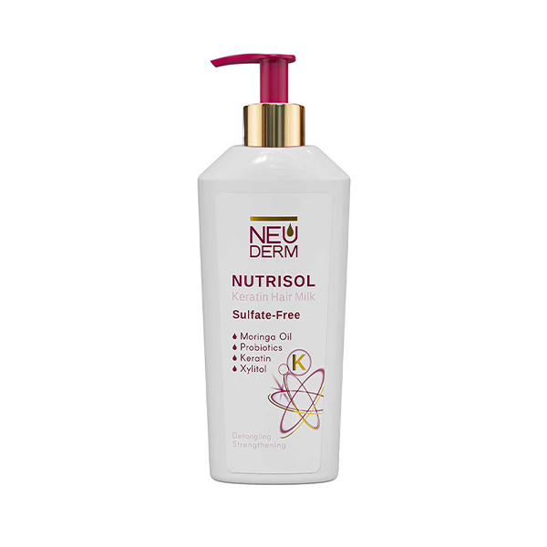 شیر موی بدون آبکشی مدل Nutrisol از برند تخصصی نئودرم (Neuderm)، راهکاری پیشرفته برای درمان موهای خشک، شکننده و آسیب‌دیده از رنگ و حرارت است. این محصول با بهره‌گیری از روغن مورینگا که سرشار از ویتامین‌های A و C است، سد دفاعی مو را تقویت کرده و مانع از ایجاد موخوره می‌شود. ترکیب کراتین در این محصول، وز مو را به طور کامل مهار کرده و با ایجاد یک لایه محافظ میکروسکوپی، از تبخیر رطوبت داخلی ساقه جلوگیری می‌کند. فرمولاسیون غیرچرب آن باعث می‌شود بدون ایجاد سنگینی، موهایی نرم، خوش‌حالت و درخشان داشته باشید.