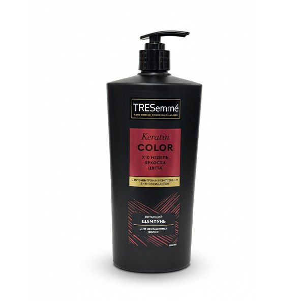 شامپو تخصصی مدل Keratin Color از برند جهانی ترزمه (TRESemmé)، محصولی حرفه‌ای برای موهای رنگ شده است که طبق مشخصات فنی، تا ۱۰ هفته ماندگاری و درخشش رنگ مو را تضمین می‌کند. این محصول با بهره‌گیری از تکنولوژی فیلترهای UV و آنتی‌اکسیدان‌ها، از اکسیداسیون رنگ مو در برابر تابش آفتاب و حرارت جلوگیری می‌نماید. وجود کراتین در این فرمولاسیون، منافذ ناشی از آسیب‌های شیمیایی را پر کرده و با صیقلی کردن سطح کوتیکول، مانع از کدر شدن موها می‌گردد. استفاده از این شامپو، نرمی و مدیریت‌پذیری موها را به طرز چشم‌گیری افزایش می‌دهد.